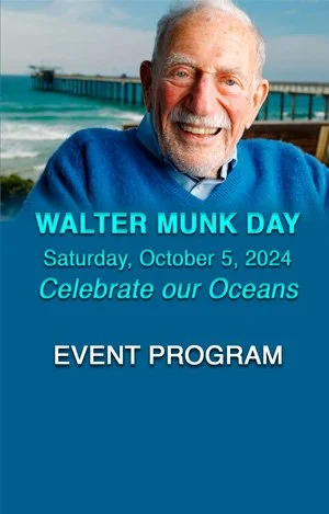 The annual Walter Munk Day celebration honors Walter’s 80-year legacy of daring exploration and discovery through scientific research, education and ocean conservation. The purpose of this event is to raise awareness of the fragility of our oceans and showcase Kumeyaay Heritage and Culture.